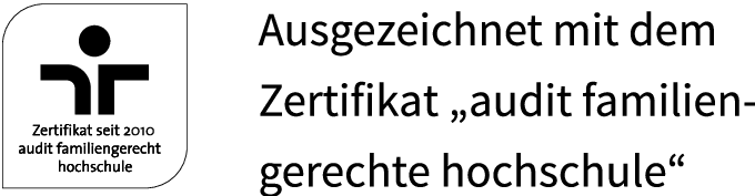 Unser zertifiziertes Audit „Familiengerechte Hochschule“ bestätigt: Hier zählt, was Familien brauchen. So kannst du dich mit einem guten Gefühl auf deine Aufgaben konzentrieren und weißt, dass wir dich in jeder Lebenslage unterstützen.